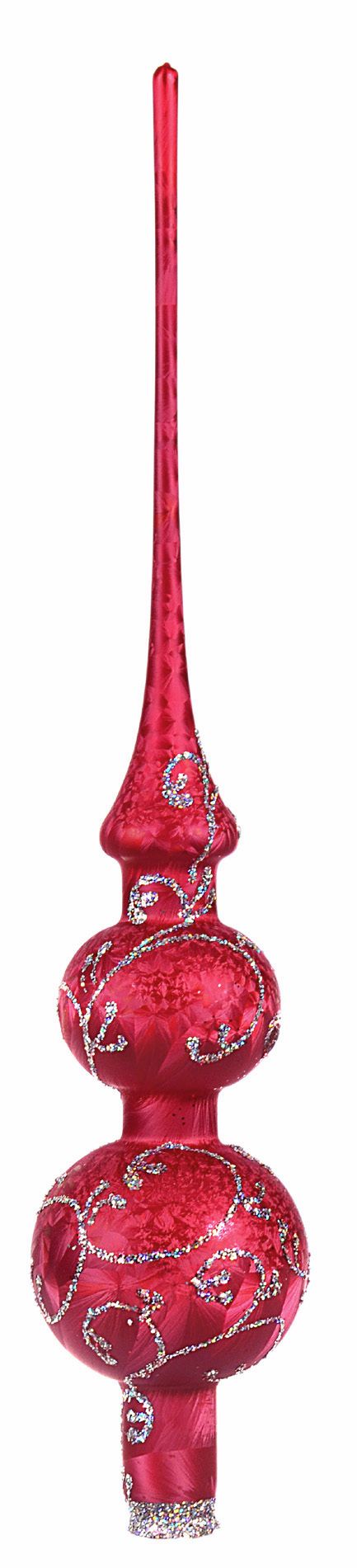 Produktinformationen "Christbaum Spitze 5/6cm rot gefrostet silberne Ranke Weihnachtsbaumschmuck ROKOKO, 1 St."