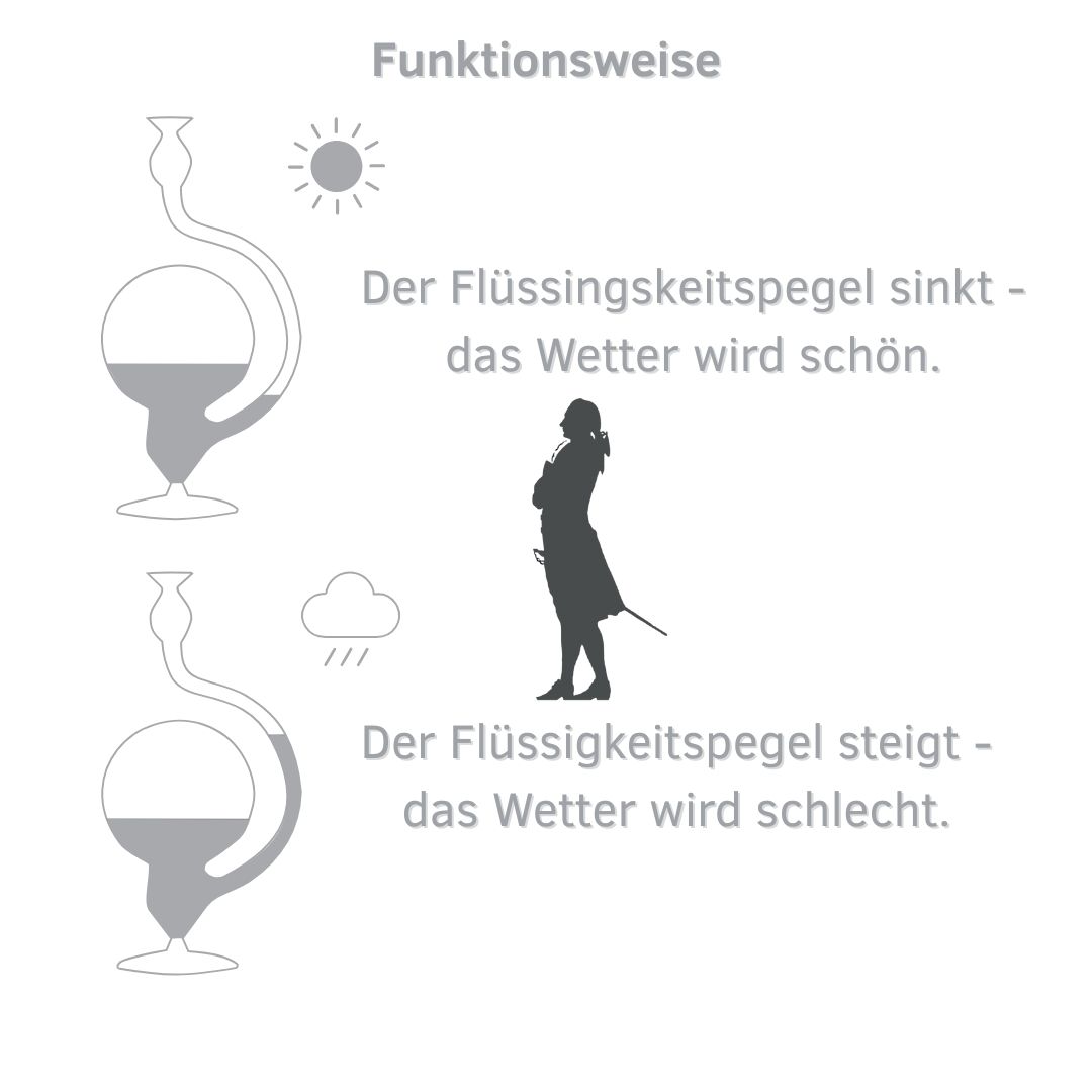 Bei hohem Luftdruck sinkt der Flüssigkeitspegel im Steigrohr – das Wetter wird schön.