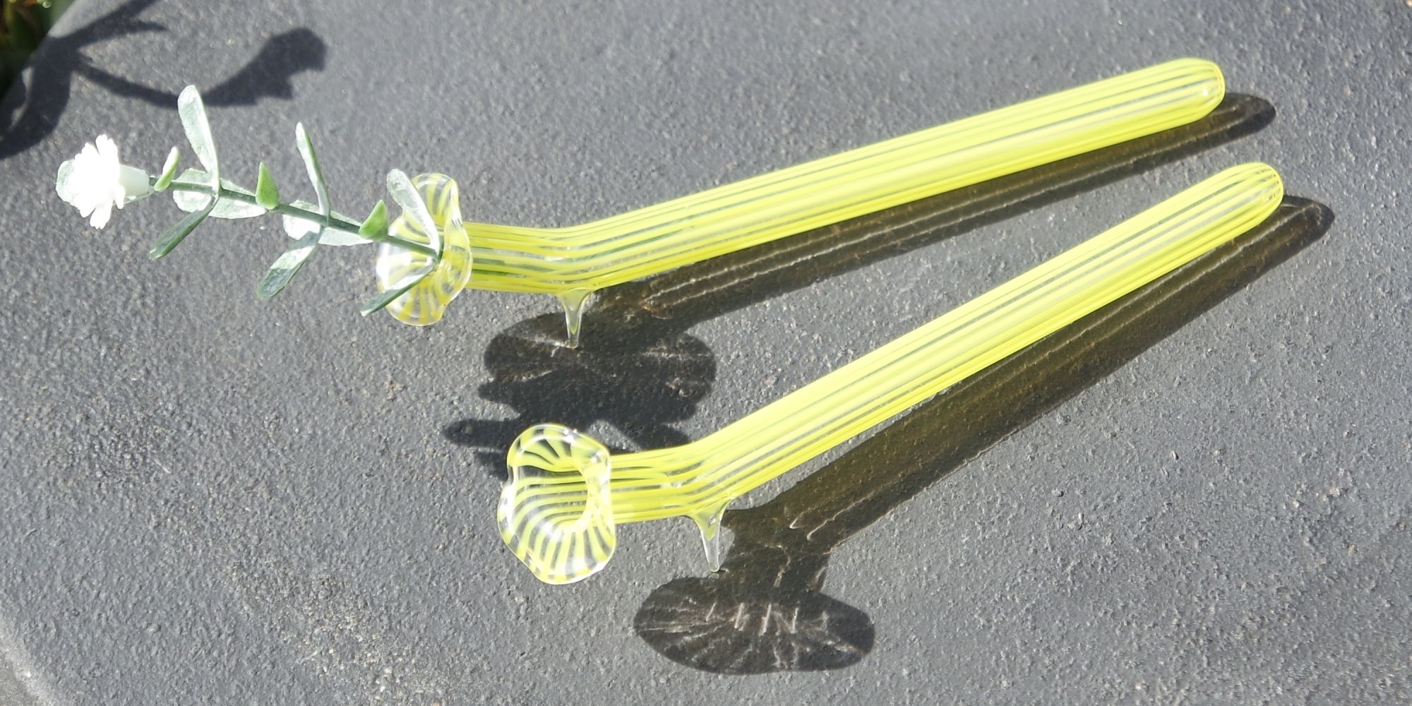 Produktinformationen "Liegevase mit gelben Farbstreifen auf Klar, 2er Set Ein Klassiker - perfekt für Tisch & Tafel"