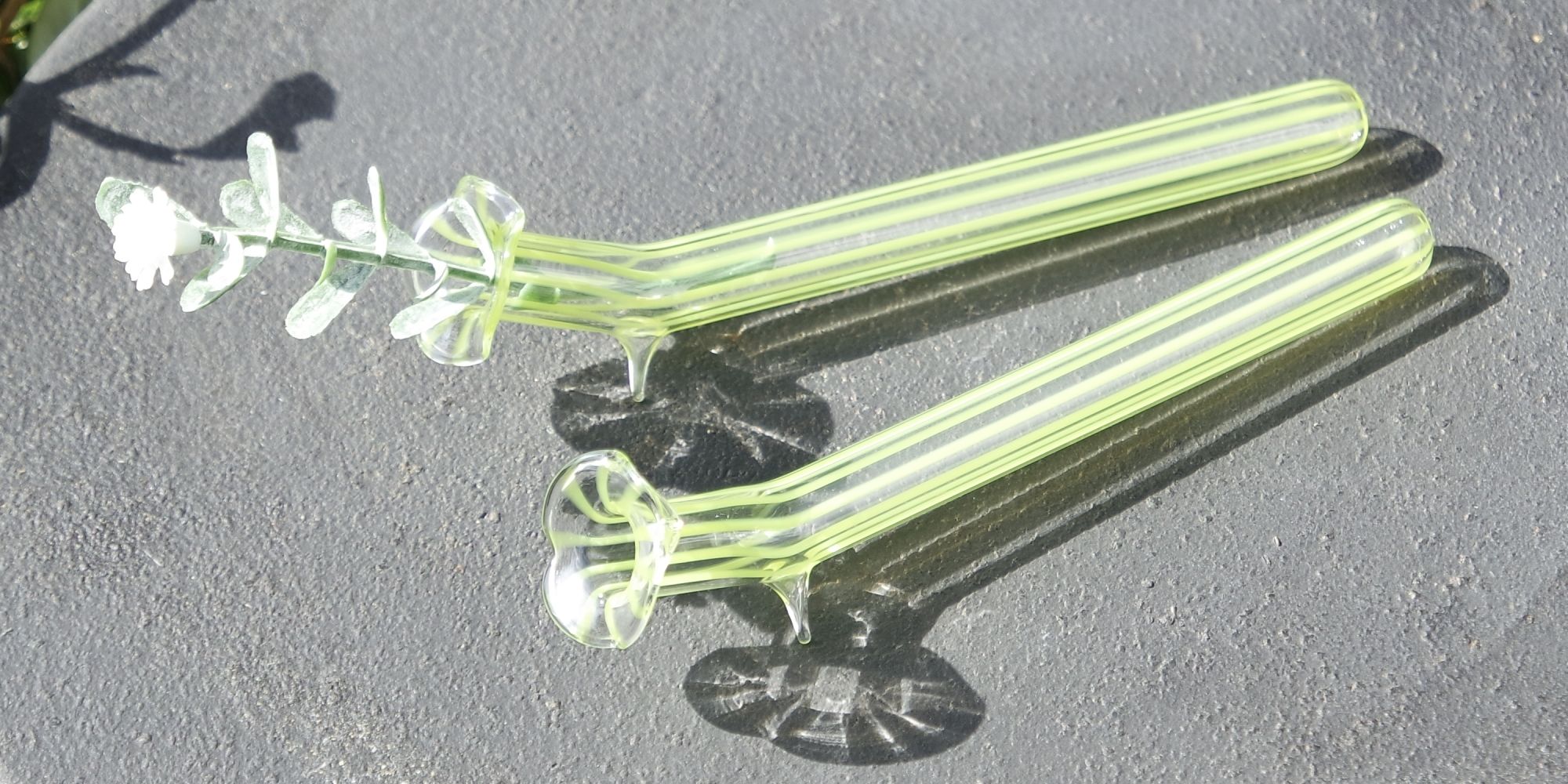 Produktinformationen "Liegevase mit grünen Farbstreifen auf Klar, 2er Set Ein Klassiker - perfekt für Tisch & Tafel"