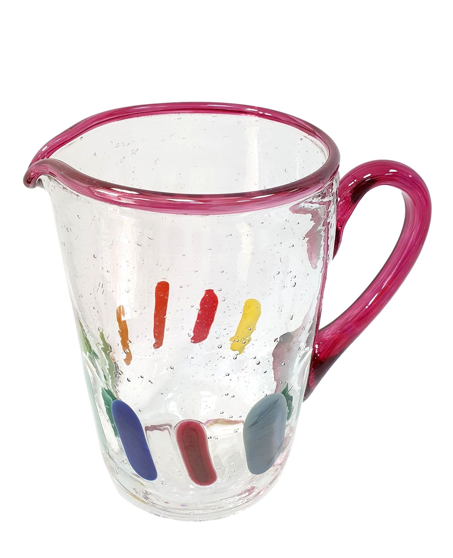 Produktinformationen "PUEBLO FarbGlasSerie - Saftkrug - Rand pink bunt - verspielt -vielfältig"