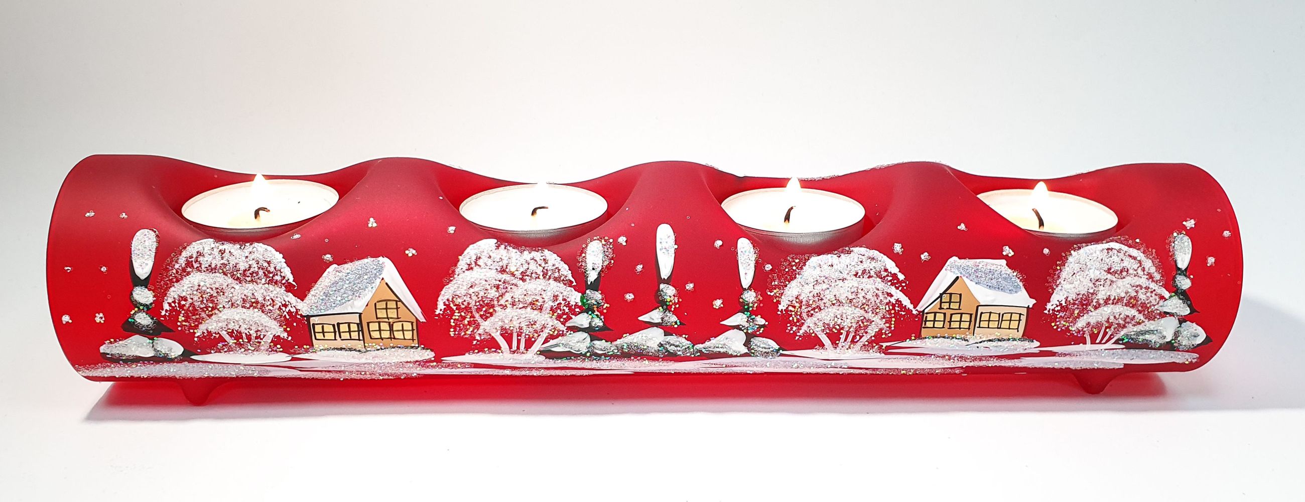 Produktinformationen "WinterRomantik - Teelichtröhre 4-fach Winterlandschaft rot L= 30 cm D ca. 6 cm"